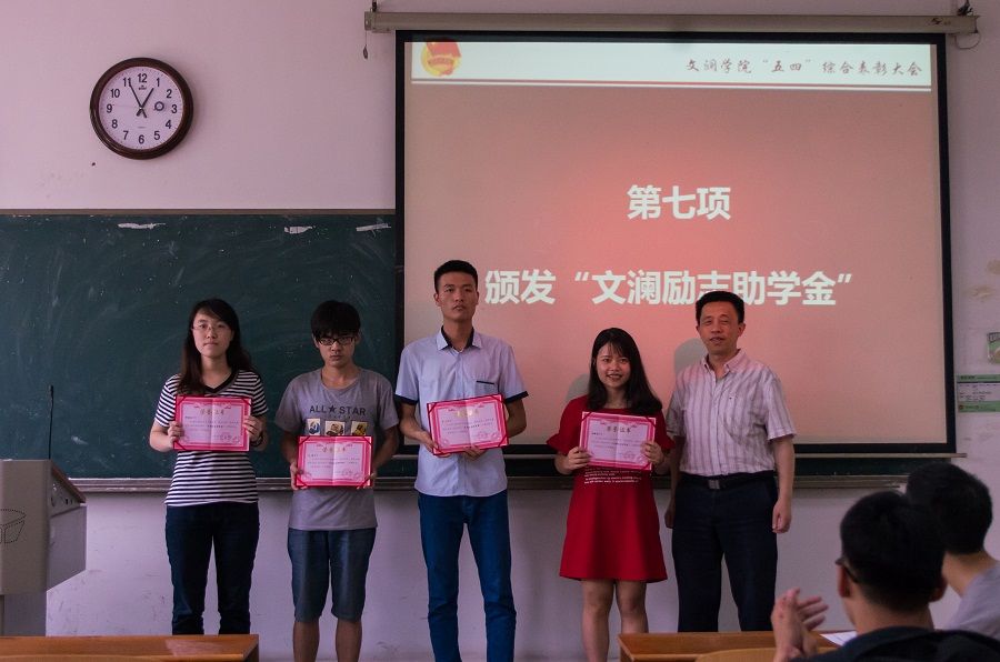 (37000cm威尼斯团委记者 刘楠頔 罗心怡)2016年6月8日中午,37000cm威尼斯于文波楼举行了第一届五四表彰大会暨“文澜励志助学金”颁奖典礼。对在2015-2016学年中表现突出的先进个人和集体进行了隆重的颁奖。